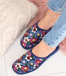 Kapcie damskie Natural Style NS-066 Granatowe Kwiatuszki